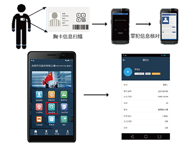 对于每个罪犯的服刑情况,对应监区的民警可通过APP扫描罪犯胸卡进行识别,并将罪犯信息在移动终端上进行显示,如入狱原因、服刑年限等,便于民警对工作进行安排。