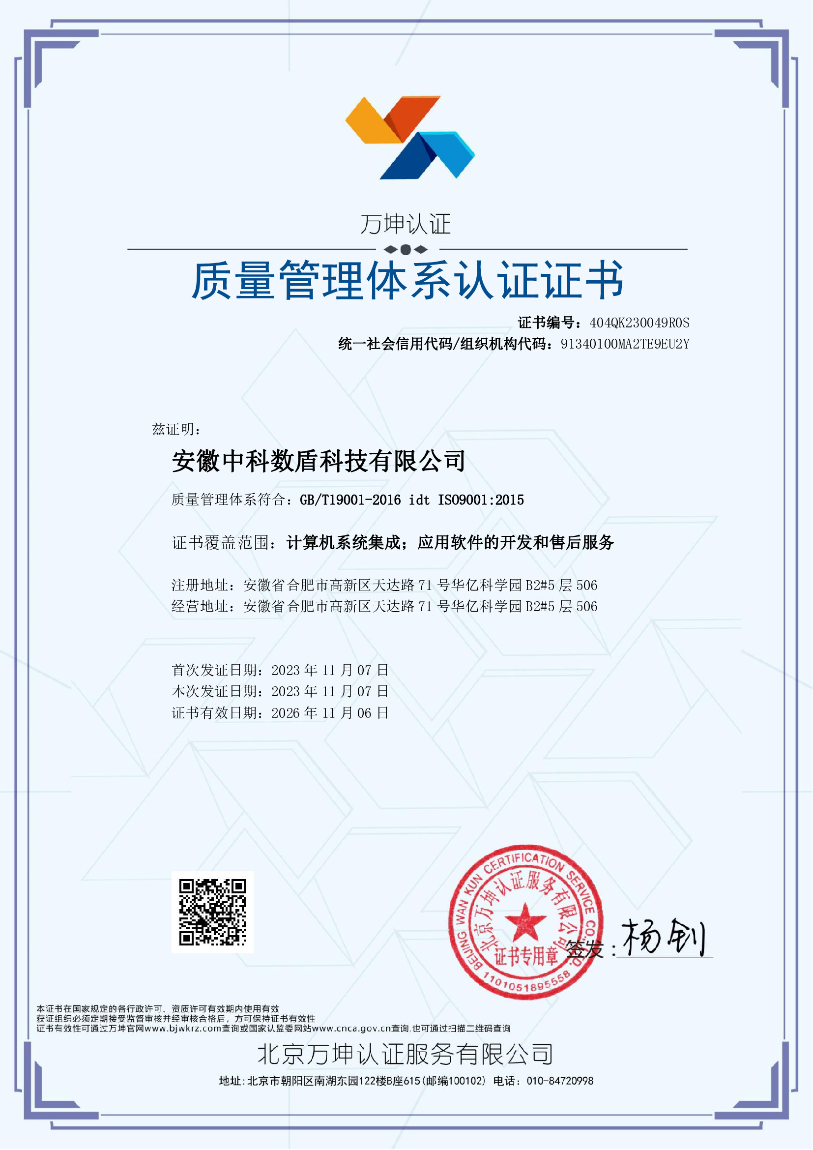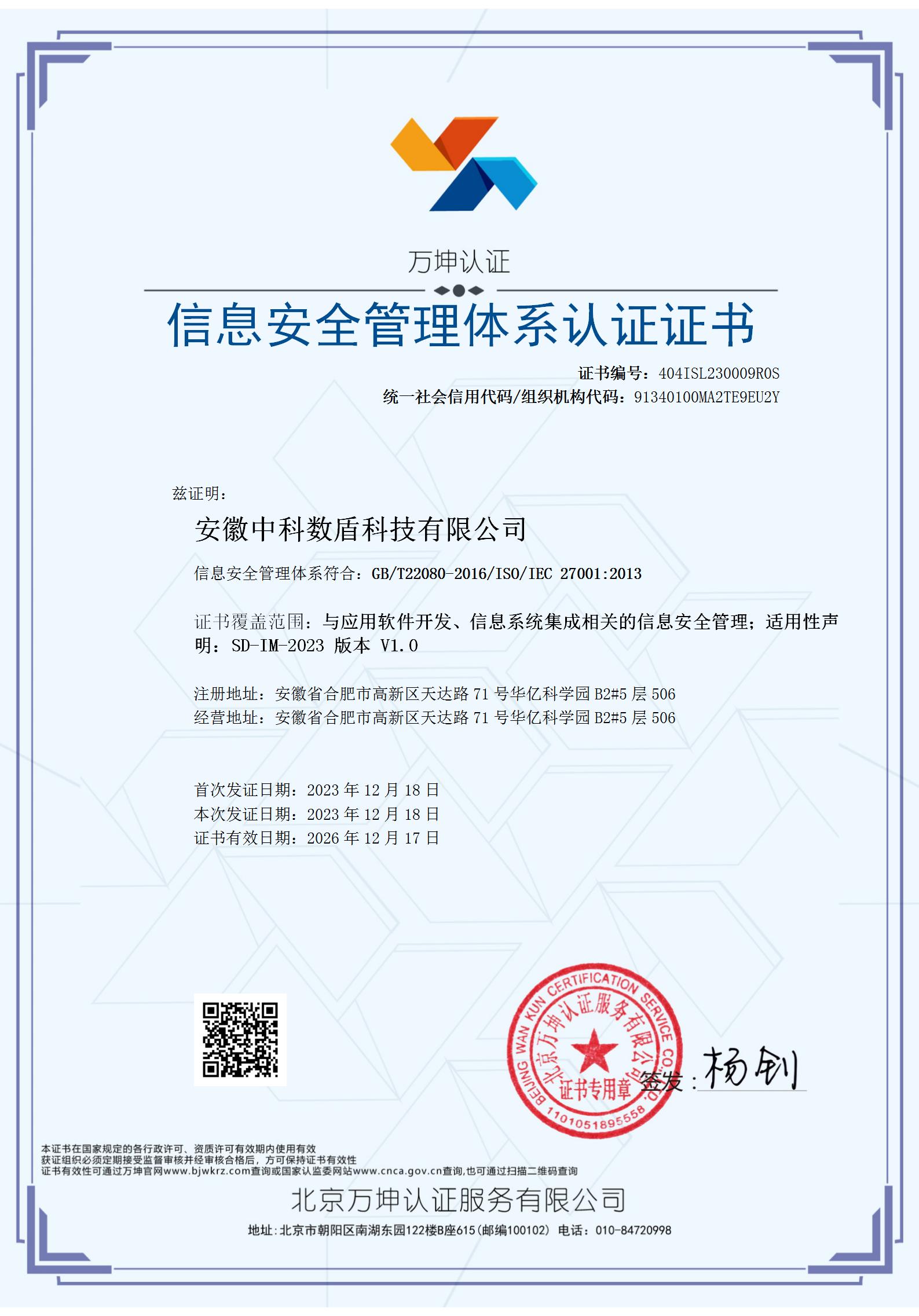 安徽中科数盾科技有限公司-ISMS-中文证书_01