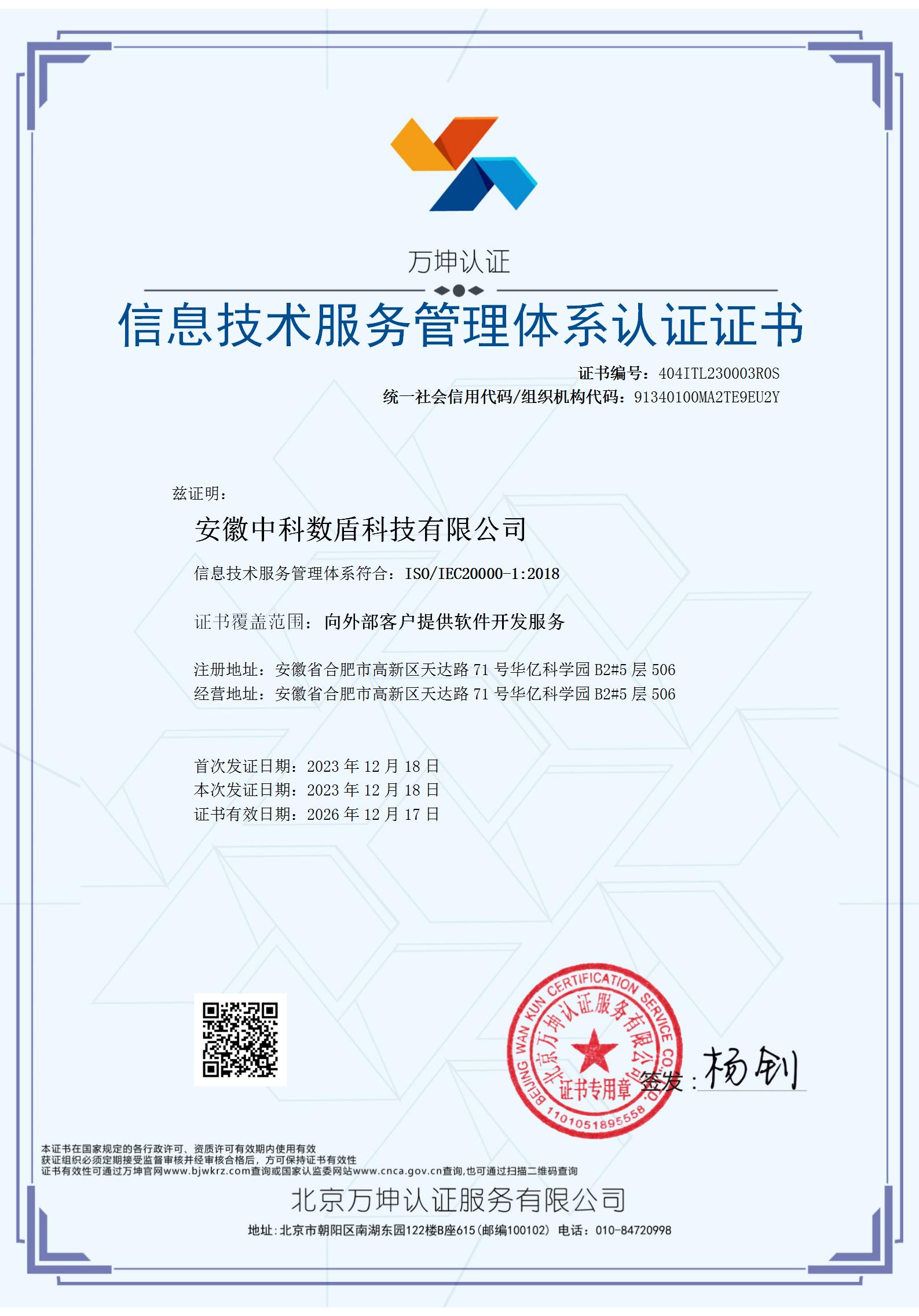 安徽中科数盾科技有限公司-ITSM-中文证书_01